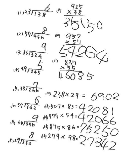Children who acquire the high-speed calculation ability through the Shichida Method can breeze through complex calculation as you see on the right.